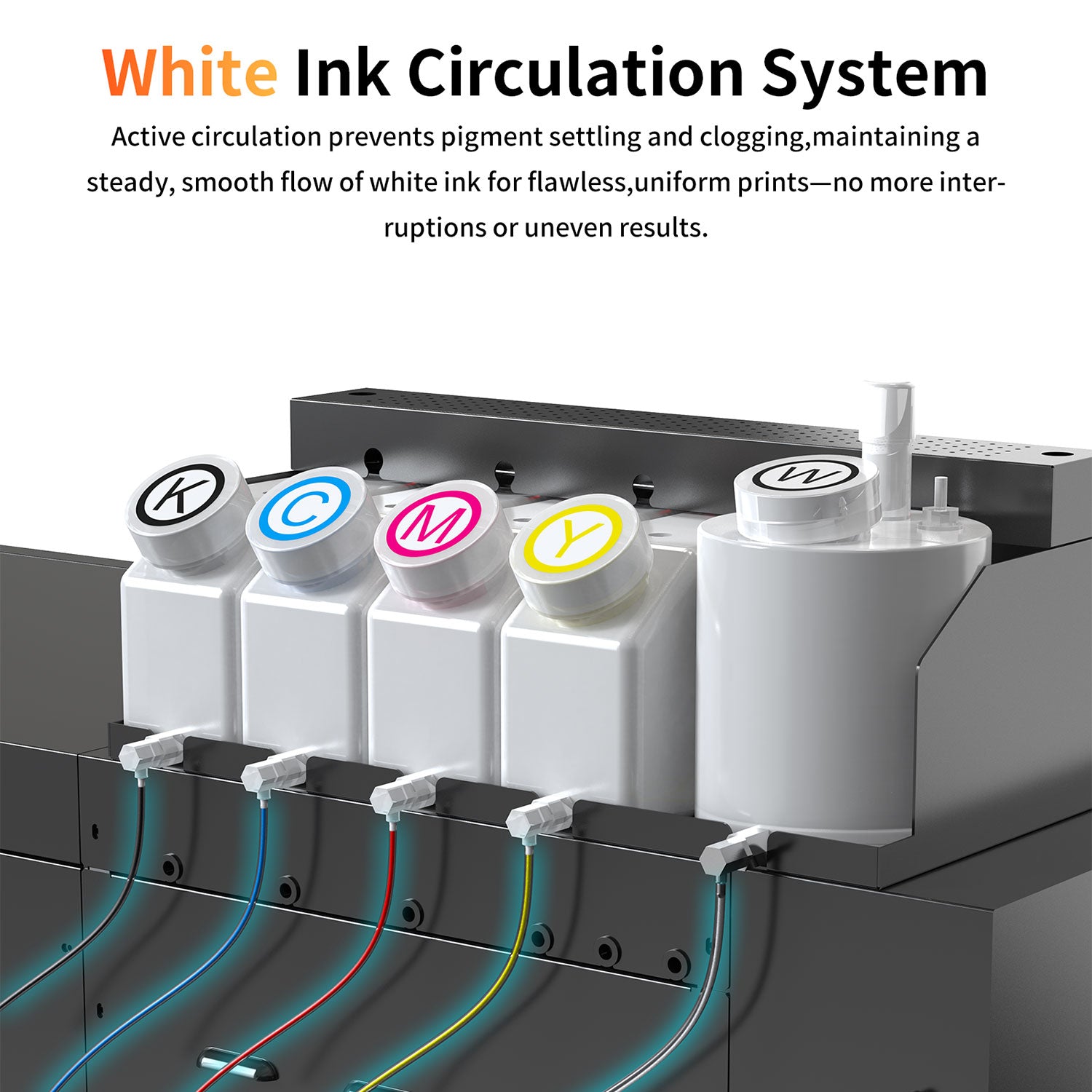Active circulation prevents pigment settling and clogging,maintaining a steady, smooth flow of white ink for flawless,uniform prints—no more interruptions or uneven results.