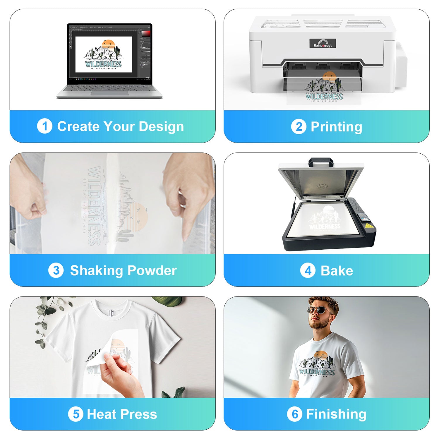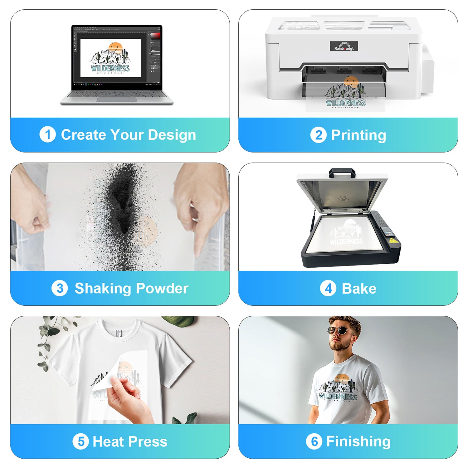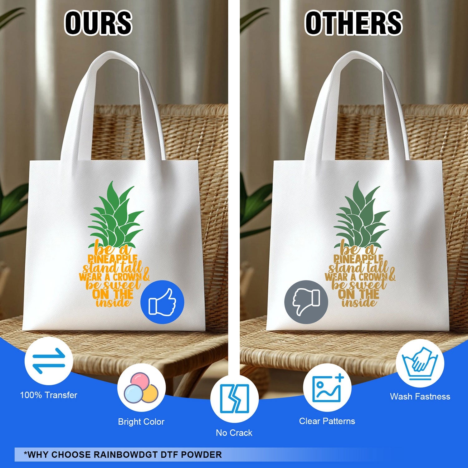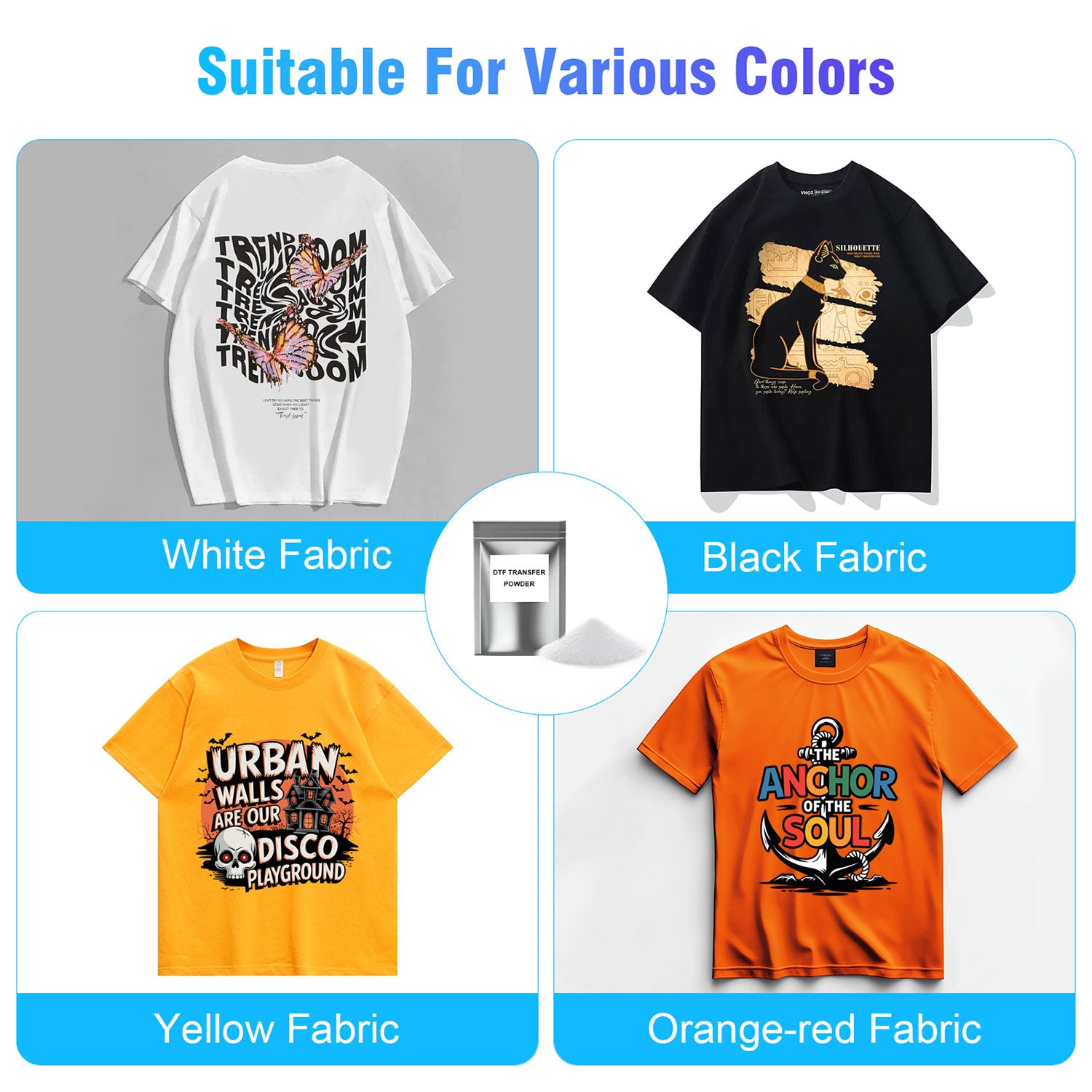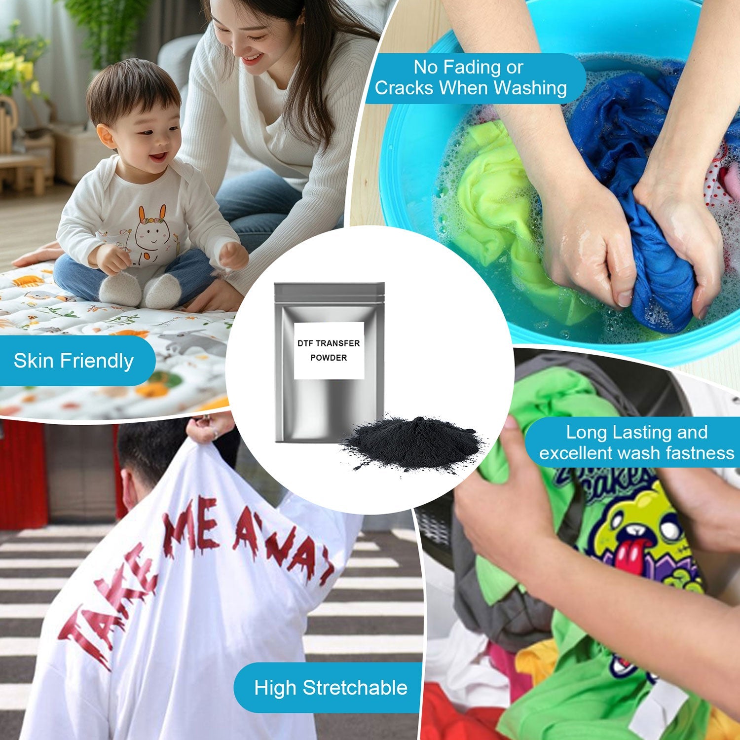 - DTF powder sticks to the ink instead of the film, providing bright, vibrant colors; Waterproof , durable and washable