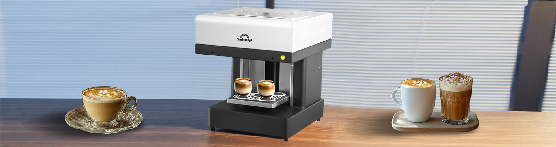The selfie coffee printer is automatic height adjustment, suitable for cups between 8-18cm.