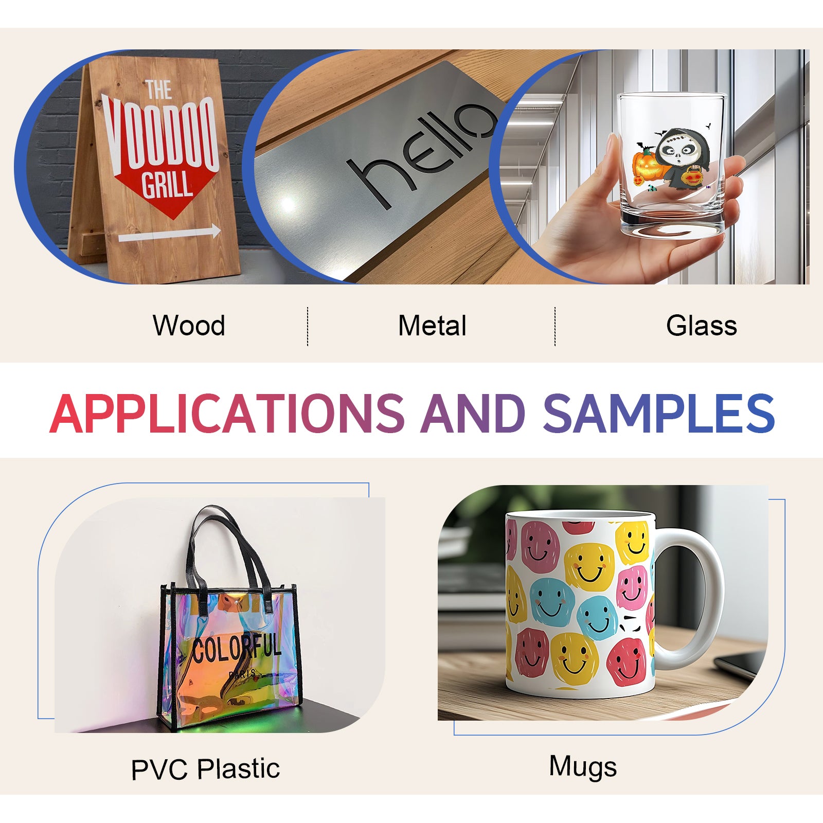 Applications: For custom phone cases,metal, tile, slate, wood, glass, plastic, pvc decor, special paper, canvas art, leather, acrylic, bamboo and more
