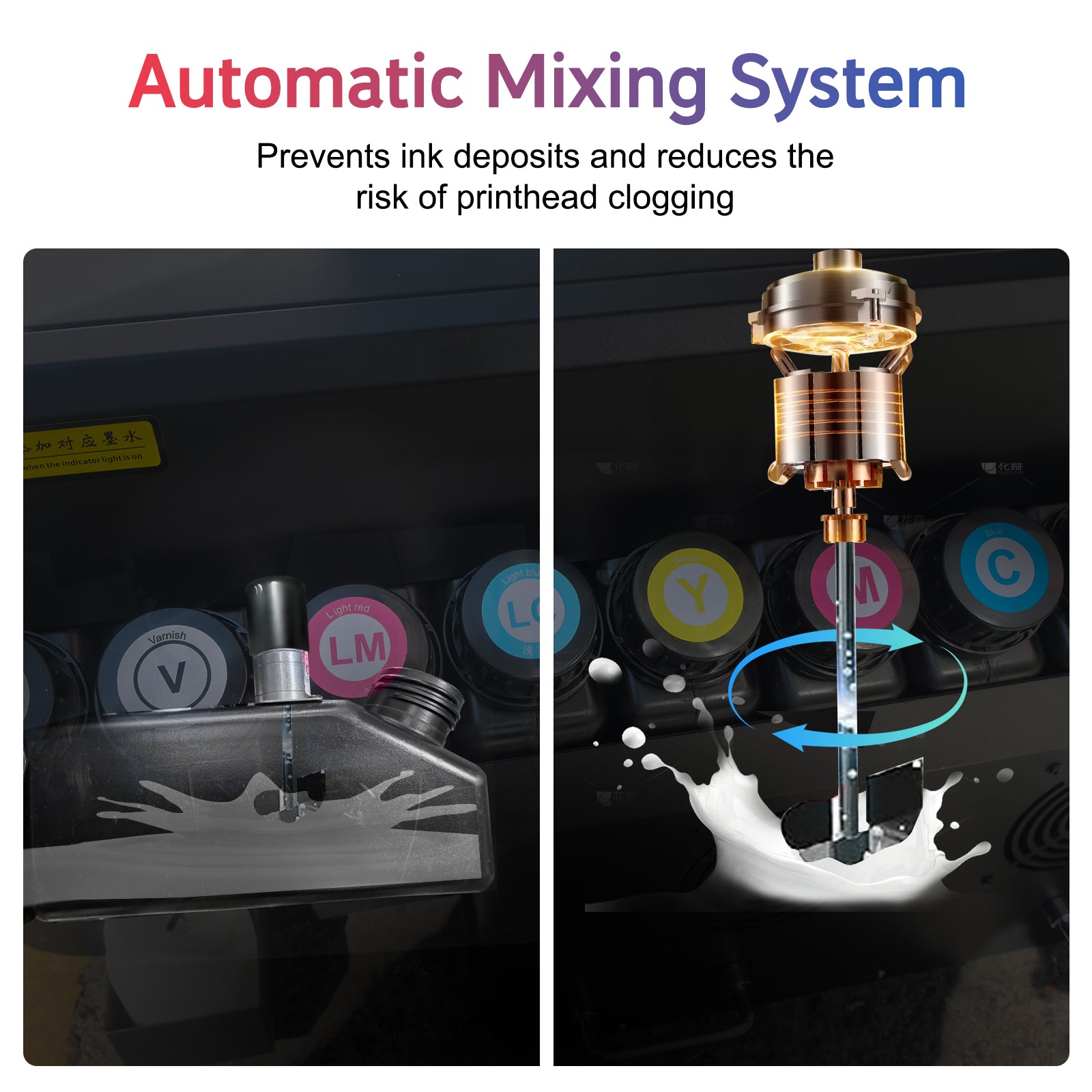 Keeps white ink fresh and uniform — preventing sediment buildup, ensuring stable color output, protecting the printhead, and reducing maintenance for longer-lasting, high-quality prints.