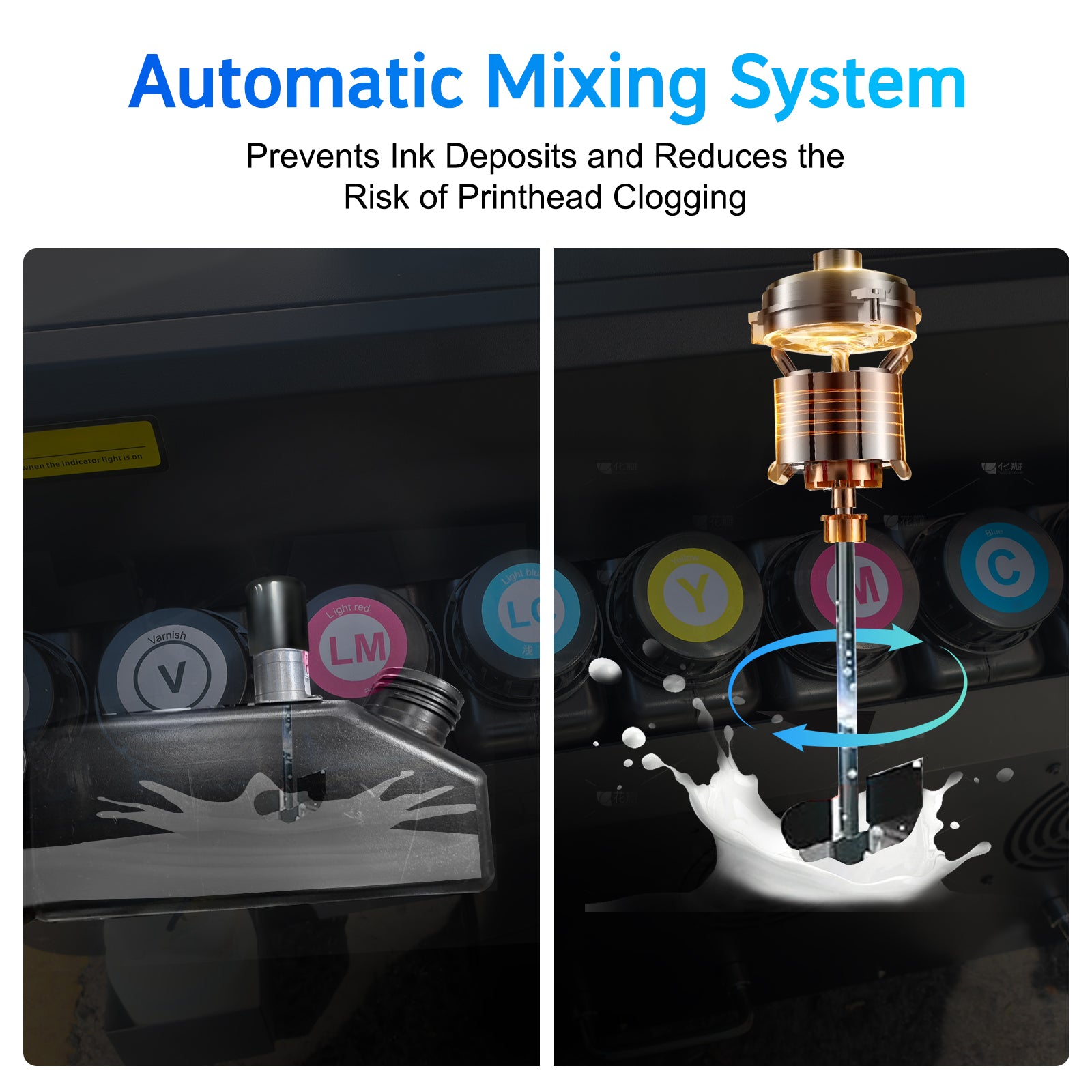 Keeps white ink fresh and uniform — preventing sediment buildup, ensuring stable color output, protecting the printhead, and reducing maintenance for longer-lasting, high-quality prints.
