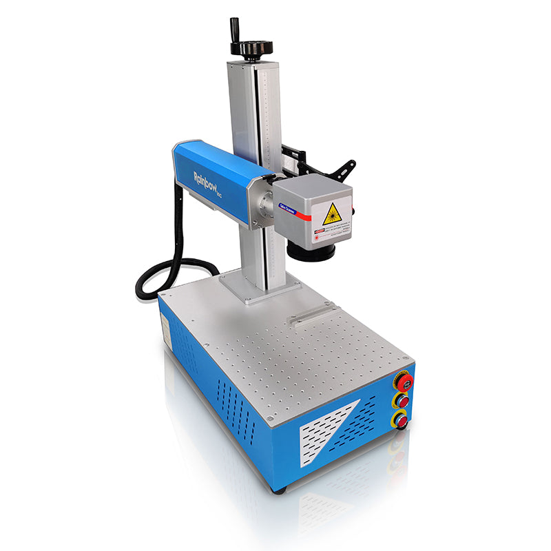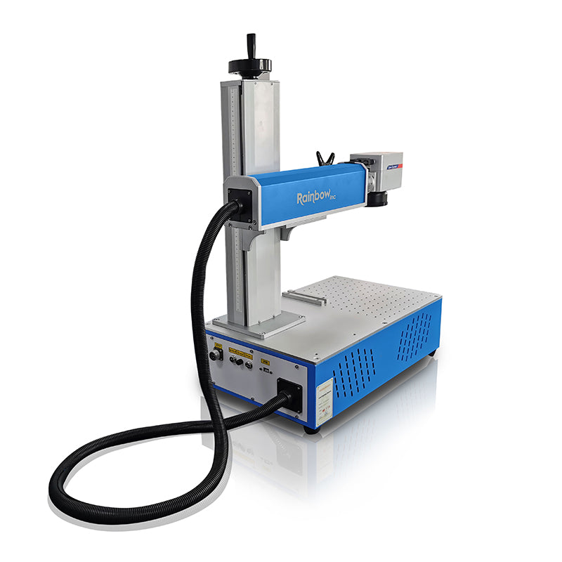Rainbow fiber laser marking machine comes with computer screen holder. Operation screen can be fixed with laser machine together. Save much space for customers.activation for superior print durability.