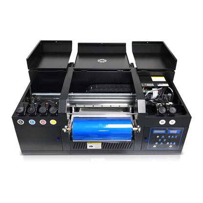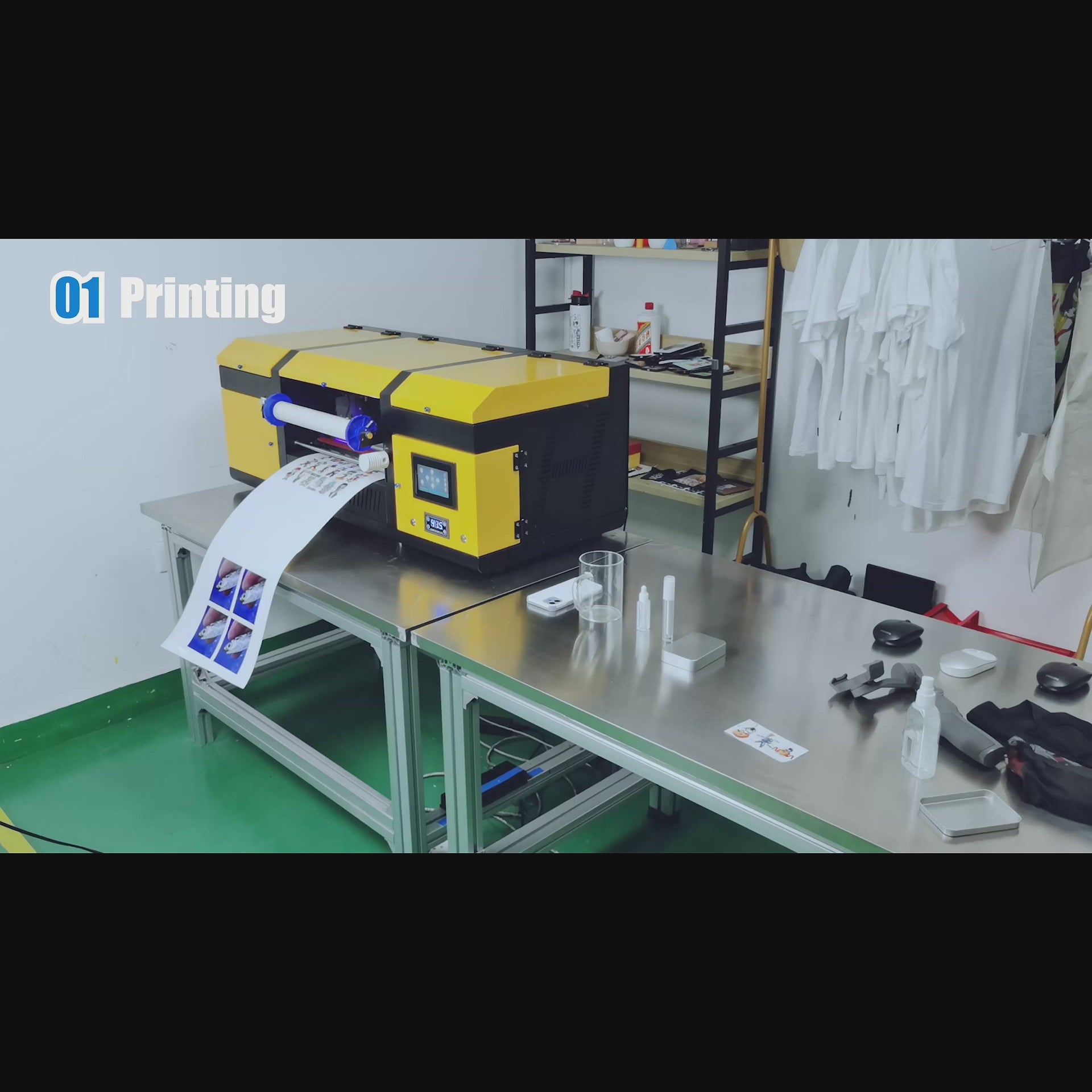Equipped with dual Epson XP600 printheads, it delivers 12-channel CMYKW+V printing, supporting color, white ink, and varnish layers — perfect for stickers, labels, and UV DTF film applications.